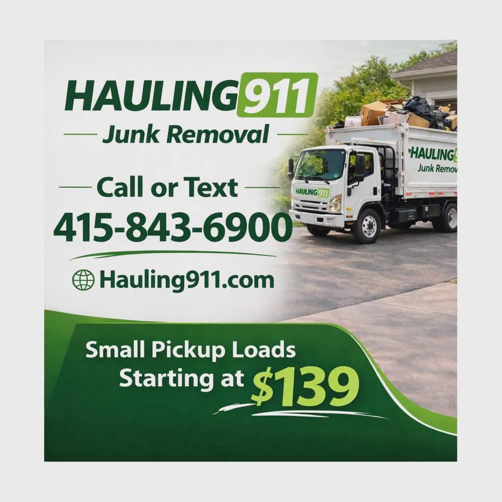 At Hauling 911, we’re Marin County’s trusted choice for full-service junk removal. Whether you’re clearing out a single item, a garage, or an entire property, our team makes the process simple and worry-free. From heavy lifting to responsible disposal, we handle everything—so you can reclaim your space without the hassle.